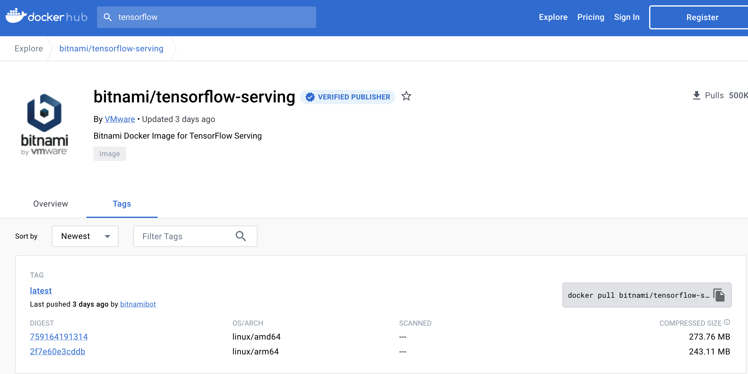 docker pull bitnami/tensorflow-serving:latest