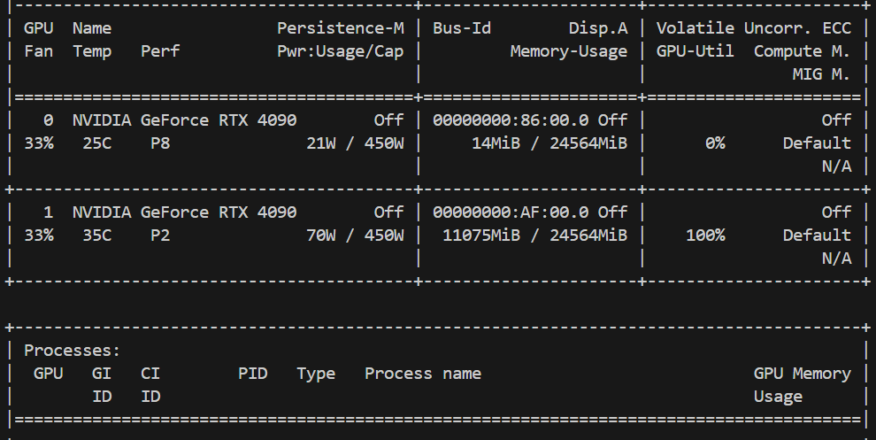 multi-gpu 사용하여 학습 진행할 예정이었는데, 내가 사용할 gpu는 2,3번 gpu 였다.
