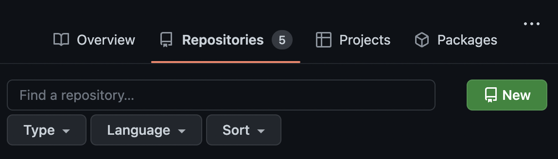 1. New 버튼을 눌러서 레파지토리를 하나 만들어 준다.