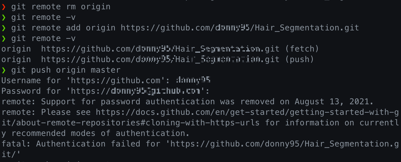 remote: Support for password authentication was removed on August 13, 2021.