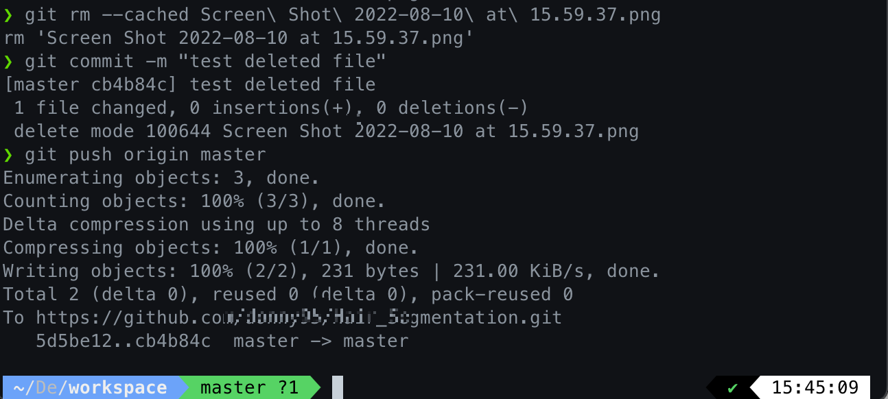 push 했었던 파일명을 적어주면 대충 삭제되었다는 메세지가 나온다.