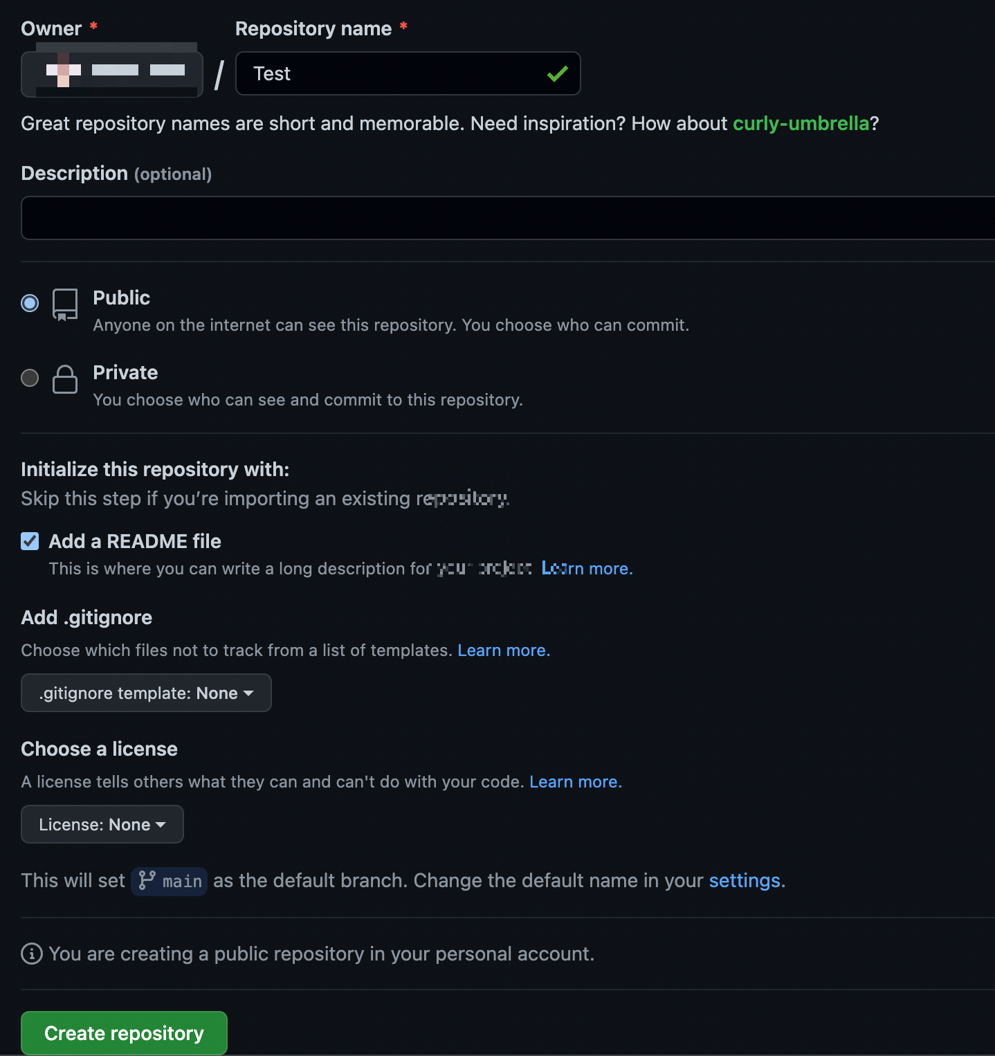 Create repository 를 누르면 만들기 성공!