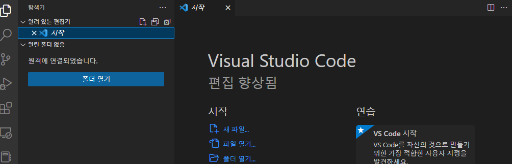 폴더 열기를 통해 서버의 폴더에 접근하여 자유롭게 코드를 작성하고 수정할 수 있습니다.